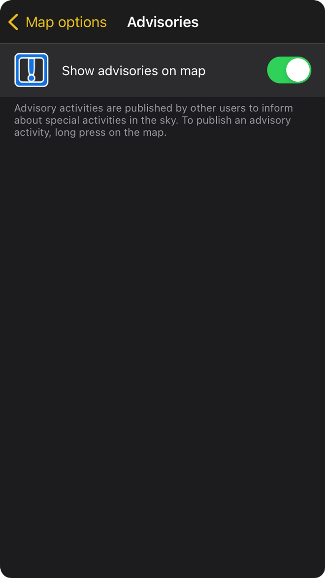 Show airspaces on map: Toggle this option ON to display them on the Moving Map and OFF to hide them.
