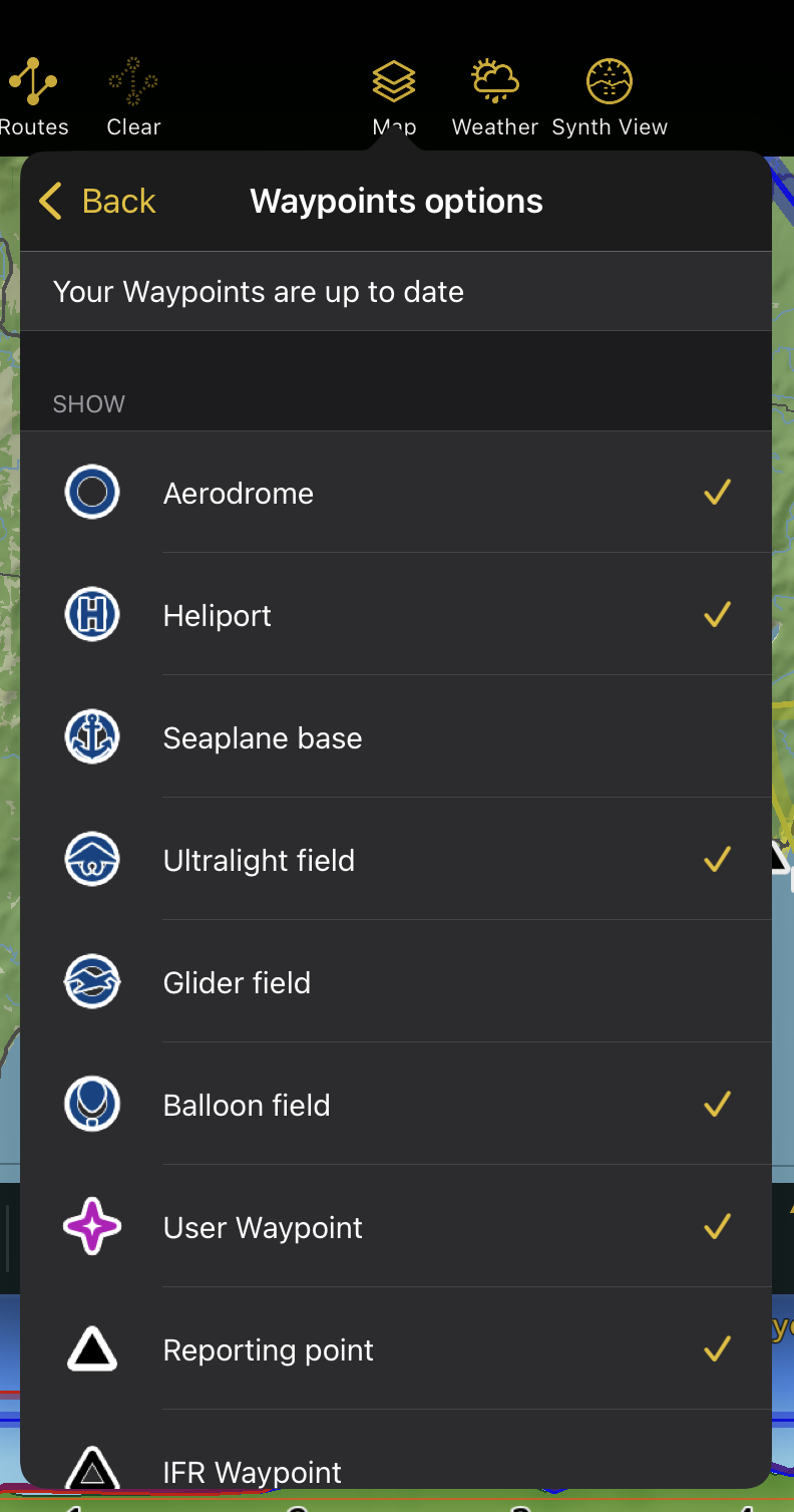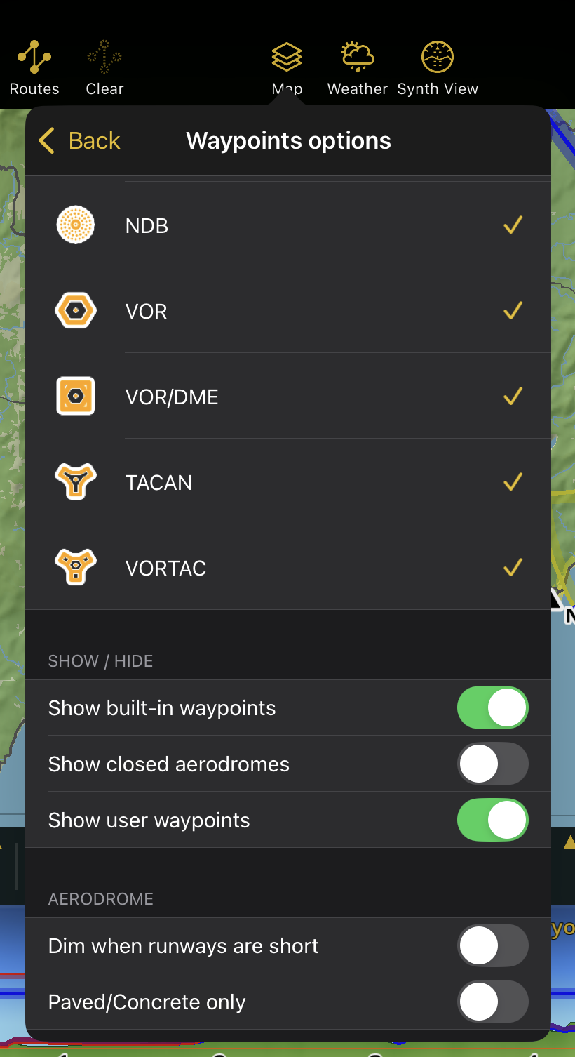 Show closed aerodromes - You can show/hide waypoints that are marked as closed on the map.